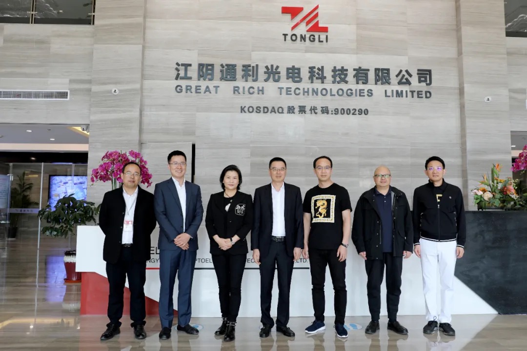 2020年11月3日,藍思科技股份有限公司(以下簡稱“藍思科技”)周群飛董事長、鄭俊龍總裁一行來江陰通利光電科技有限公司(以下簡稱“通利科技”)交流考察。通利科技董事長周永南、副總經理向江哲熱情接待,雙方共話友誼,暢敘協同發展大計。