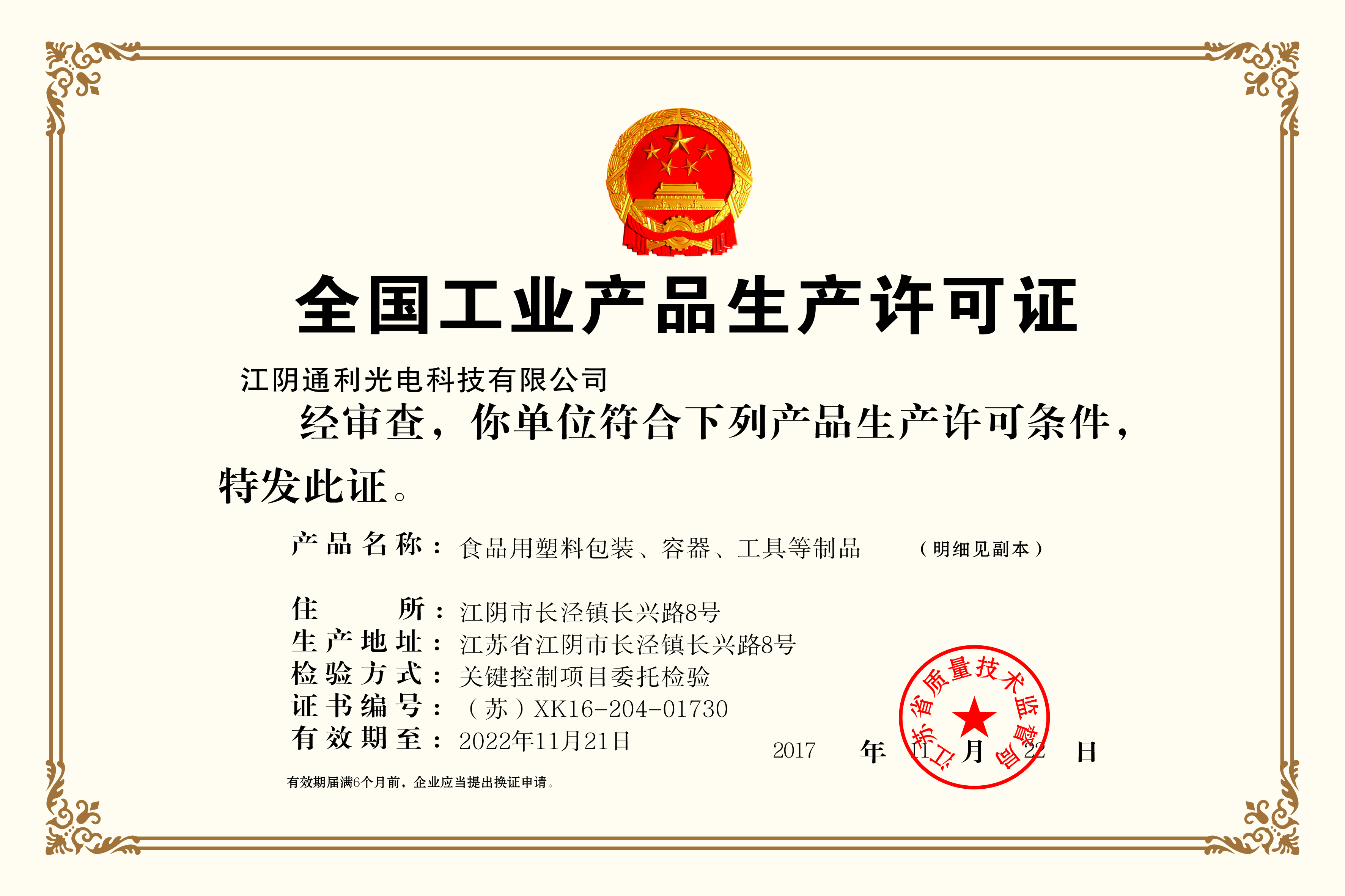 通過QS食品安全認證; 供貨康師傅、五月風、清風、維達、中金瑪泰等知名企業。